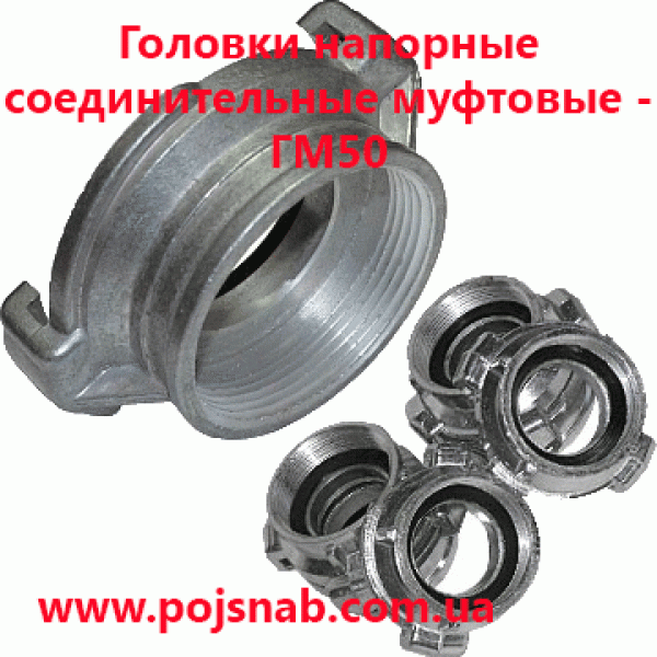 Головки ГМ50 пожежні напірні муфтові є найпоширенішим видом пожежної з'єднувальної арматури. Вони мають внутрішнє різьблення і нагвинчують зверху на деталі пожежного обладнання. Тим самим забезпечуючи можливість приєднання відповідної частини головки, змонтованої на іншому обладнанні.