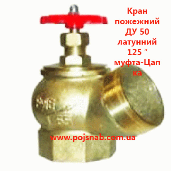 Код товару: Кран пожежний ДУ 50 латунний 125 ° муфта-Цапка