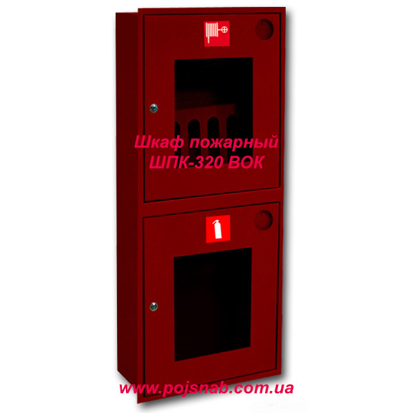 Шафа пожена ШПК-320 ВОК вбудована червона - це частина протипожежного обладнання, основним призначенням якого є розміщення в ньому: пожежний клапан, рукав пожежний, ствол РС і 2 вогнегасника масою до 8 кг. кожен, для оперативної ліквідації вогнищ загоряння до прибуття пожежного розрахунку. Встановлюється пожежна шафа ШПК-320 ВОК на виробничих об'єктах, в житлових і громадських будівлях, на автостоянках і паркувальних зонах, закріплюючись анкерними болтами в нішу стіни, в місцях розташування пожежного клапана внутрішнього водопроводу.