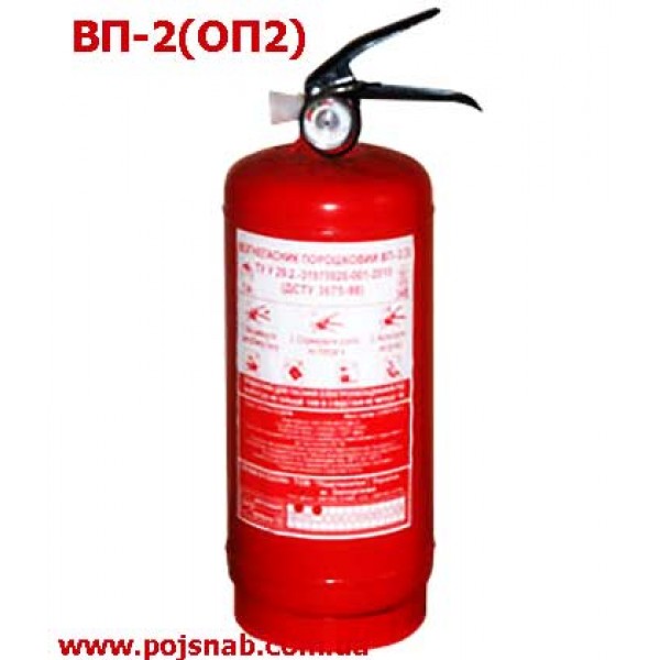 Порошковими вогнегасниками ВП2(ОП2) рекомендується обладнати легкові та вантажні автомобілі, сільськогосподарську техніку, протипожежні щити на хімічних об'єктах, у гаражах, майстерень, офісах, готелях і квартирах.
