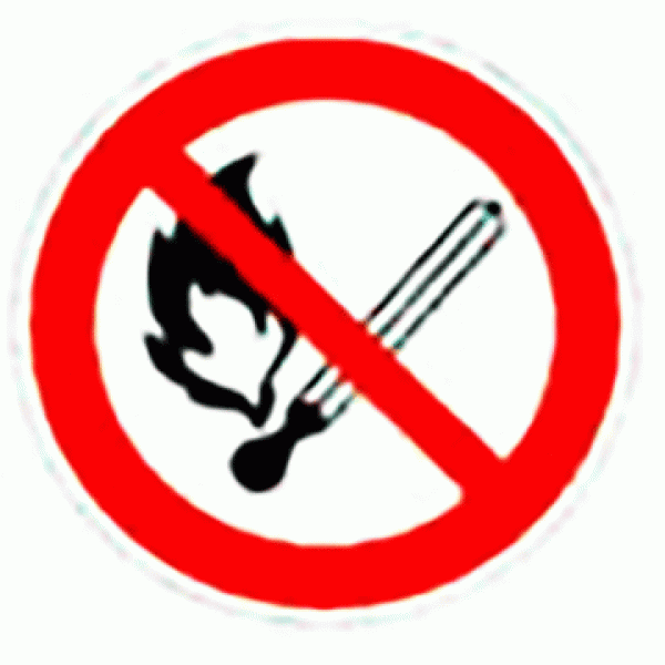 Використовувати, коли відкритий вогонь і куріння можуть стати причиною пожежі. На вхідних дверях, стінах приміщень, ділянках, робочих місцях, ємностях, виробничої тарі